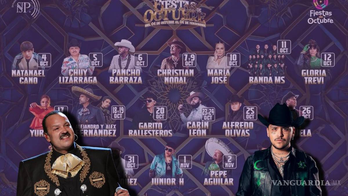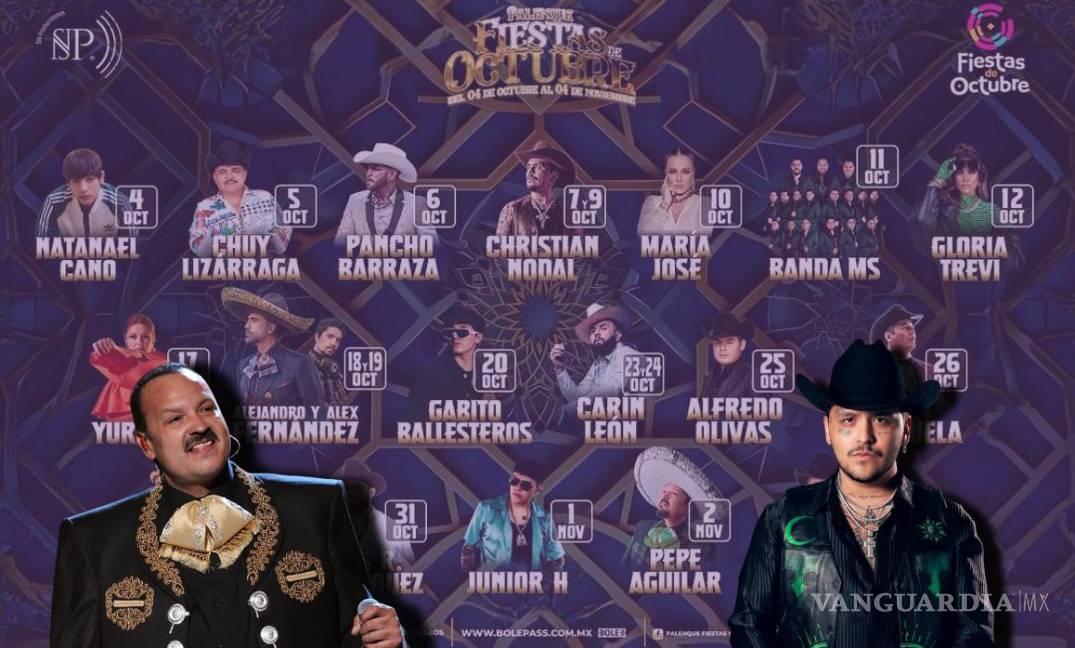 Fiestas de Octubre 2024: Nodal, Pepe Aguilar, Junior H. y Julión Álvarez se presentarán en Palenque