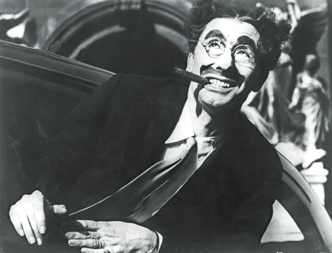 Groucho Marx contaba chistes a todas horas sin importarle a quién pudiera ofender, tanto en su vida real como en sus conocidas películas, como cuando, en una ocasión, en la que fue invitado a México e informado de que al día siguiente sería recibido por el presidente, preguntó: “¿Y quién me garantiza que mañana a las tres seguirá siendo presidente?”.