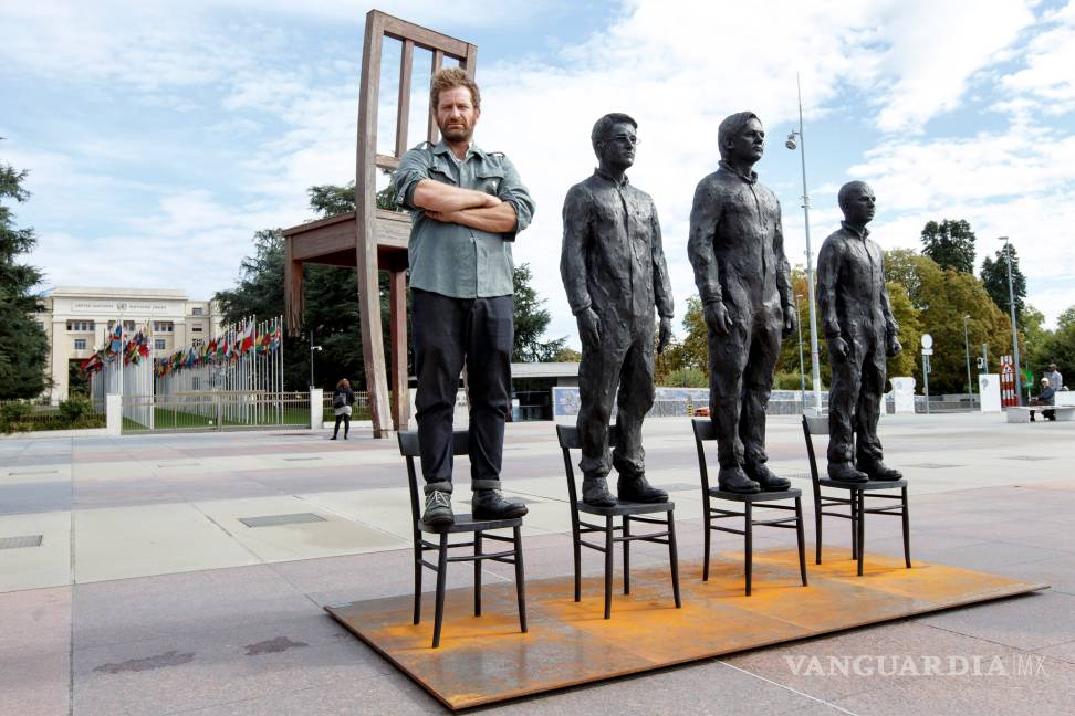 El Centro Pompidou, tras recibir una proposición de Reporteros Sin Fronteras (RSF), acoge en su explanada este proyecto artístico de movilización ciudadana que consiste en tres esculturas -en bronce y a tamaño real- de Assange, Snowden y Manning, cada uno sobre una silla.