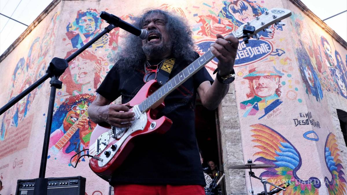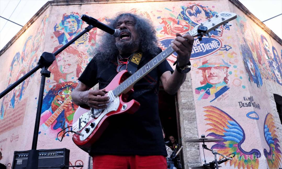 “Oye el vato me pintó muy fresa ¿no?, yo soy un vato loco con la greña suelta”, dijo el rockero de 78 años al ver su rostro plasmado en el muro del Centro Histórico, en el cual se le puede apreciar con el cabello definido y sosteniendo una guitarra.