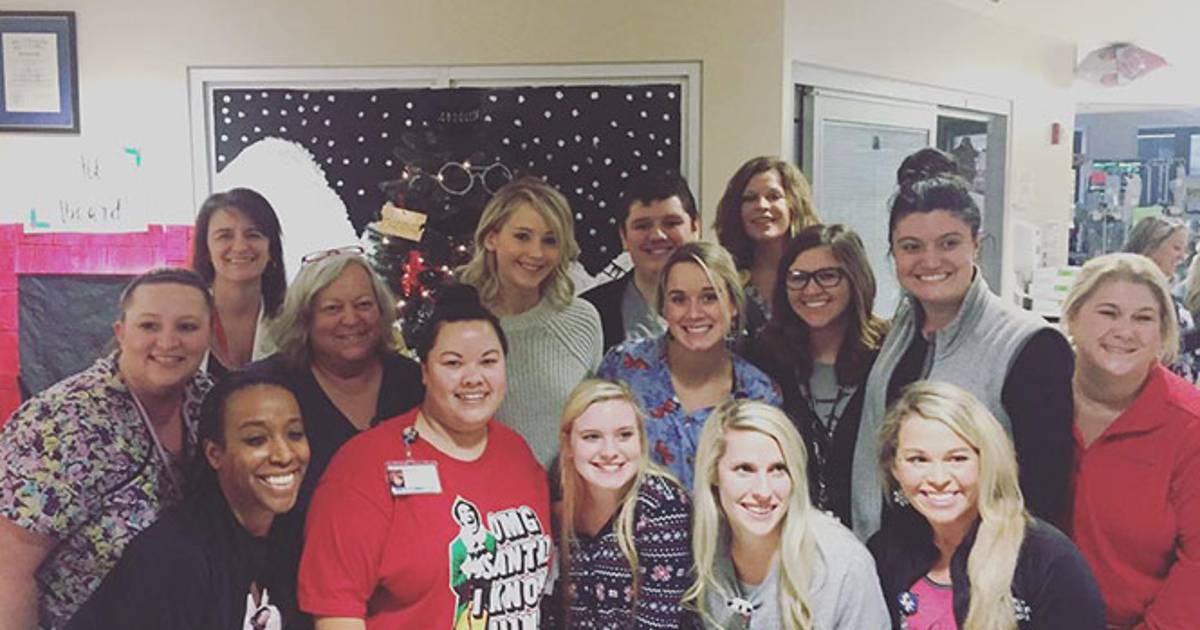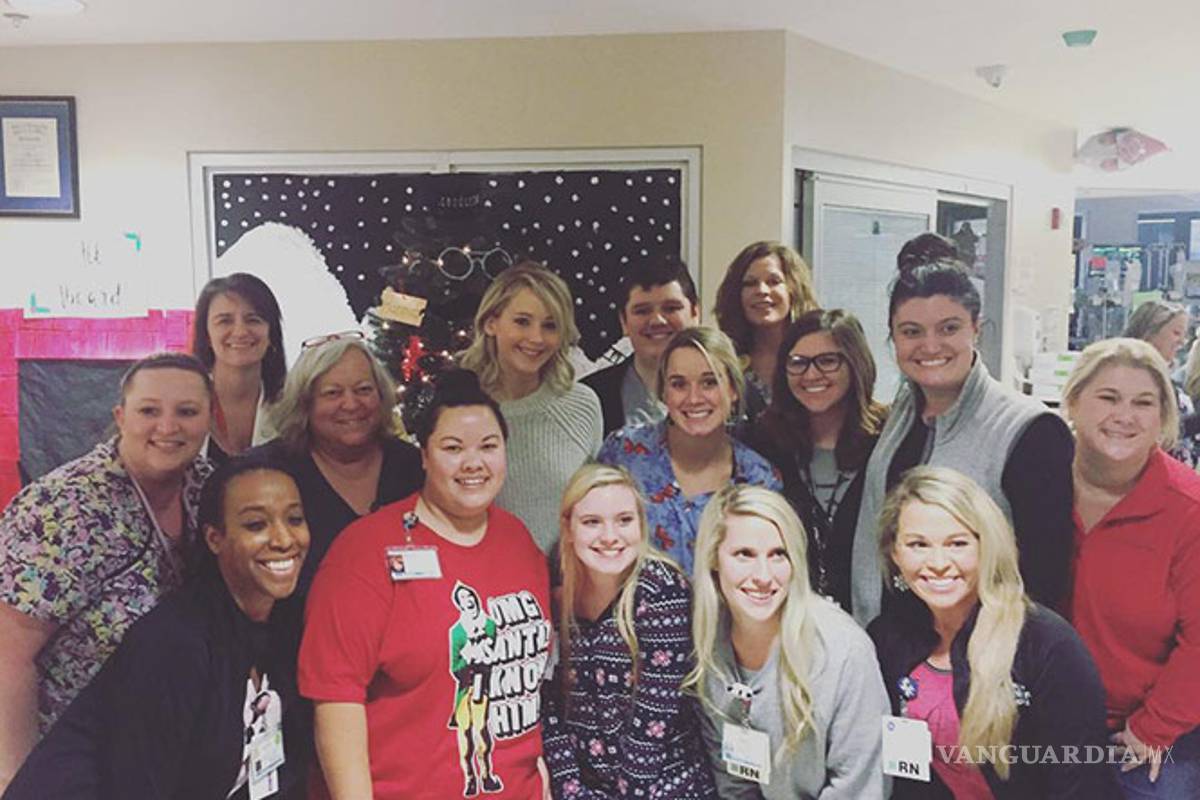 Jennifer Lawrence visitó un hospital pediátrico de Kentucky para darle ánimo a los niños y asistentes médicos en medio de la Navidad.