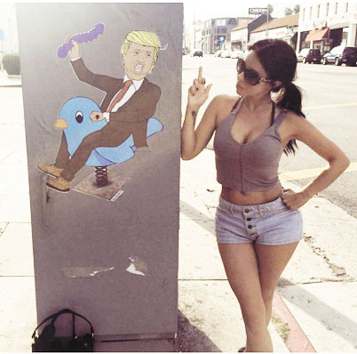 La imagen se encontraba en un muro de las calles de Estados Unidos, por lo que la conductora de Fox Sports aprovechó para sacarse un ‘recuerdito’ con el precandidato a presidente de Estados Unidos por el Partido Republicano.