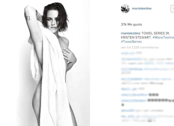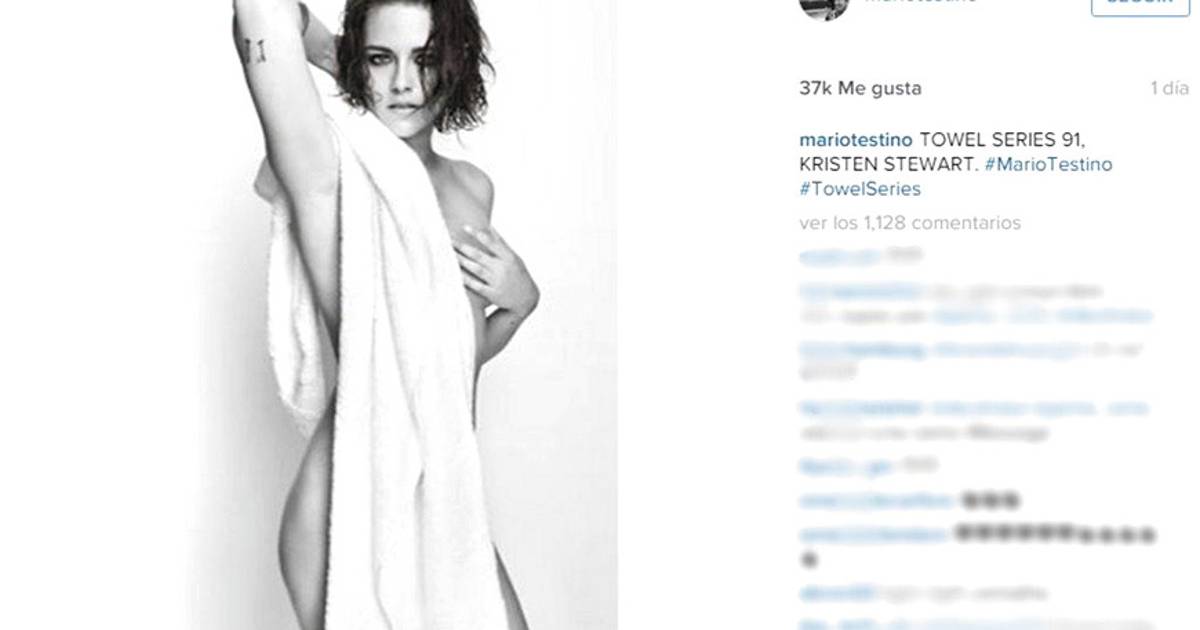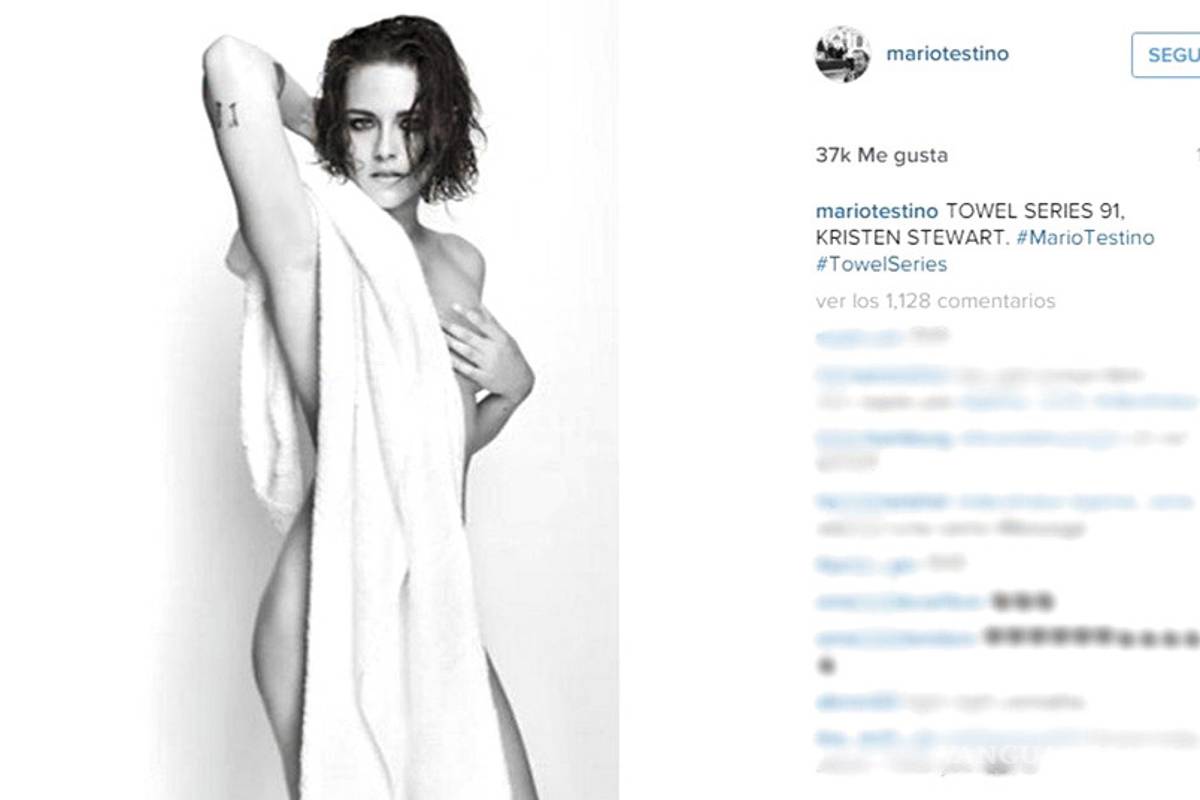En su cuenta de Instagram, Mario Testino compartió el retrato que le hizo a Kristen Stewart para su serie “Towels” (“Toallas”), que se caracteriza por mostrar la intimidad de las sesiones de fotos que realiza con los famosos, mostrándolos usualmente semidesnudos cubiertos con, precisamente, por las mencionadas toallas.