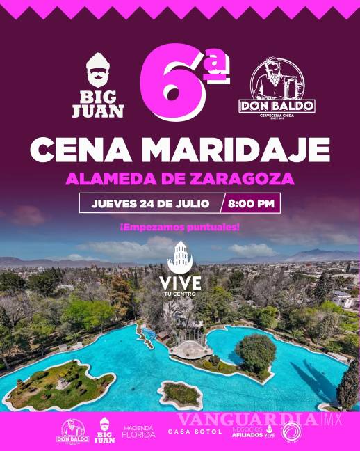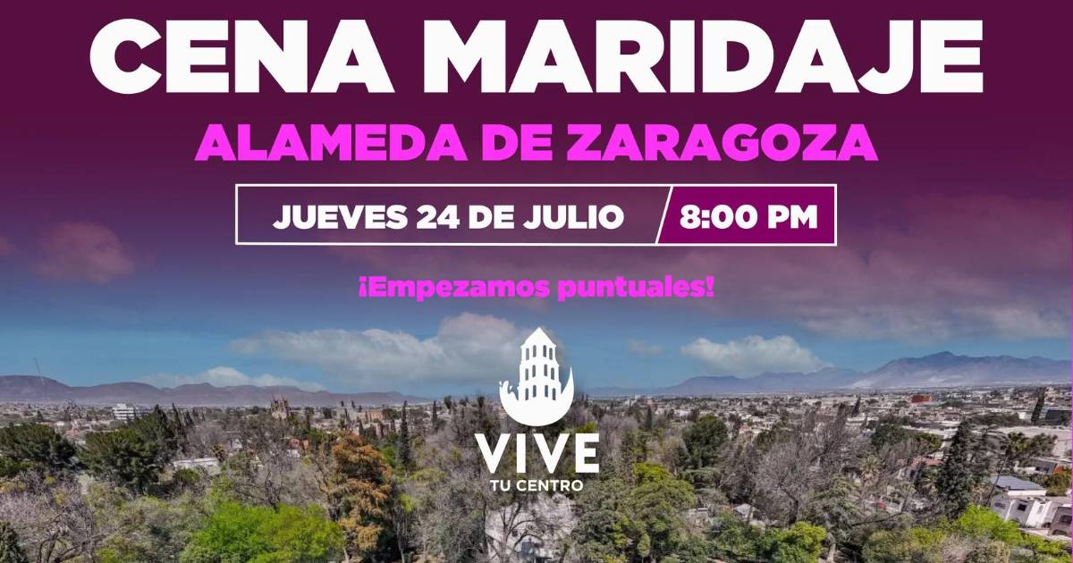 Este jueves 24 de julio, la emblemática Alameda de Zaragoza será escenario de una noche que reúne gastronomía, música y comunidad. Se trata de la 6ª Cena Maridaje, un evento que forma parte del programa #ViveTuCentro, impulsado por la Oficina de Convenciones y Visitantes (OCV) de Saltillo con el objetivo de revitalizar el Centro Histórico y fortalecer su identidad como punto de encuentro ciudadano y atractivo turístico.