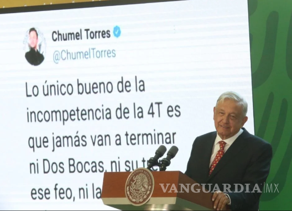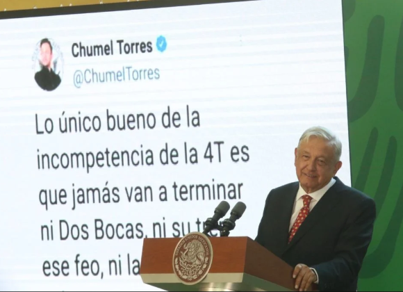 Enseguida, sobre otros proyectos de la 4t, recalcó Chumel: “Lo único bueno de la incompetencia de la 4T, es que jamás van a terminar ni dos bocas, ni su tren ese feo, ni la central avionera”, a lo que AMLO sólo respondió con una carcajada.