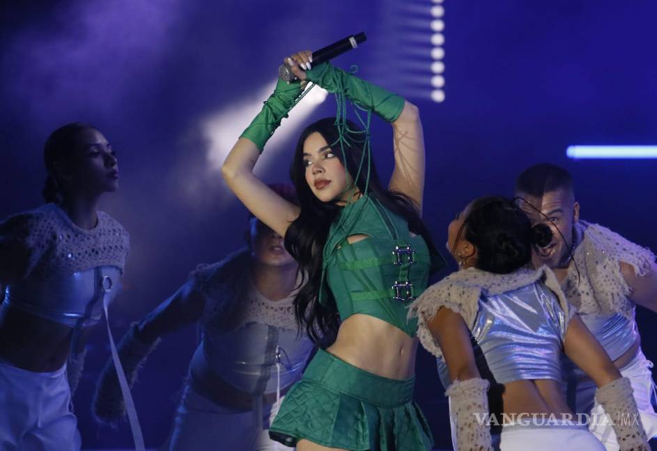 Con un atuendo verde rubí y unos 10 bailarines, Kenia Os abrió el escenario al ritmo de “Mía mía”, uno de los singles más esperados y coreados de la noche. La energía cimbró el Auditorio.
