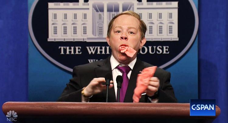 McCarthy como el secretario dijo que Trump llevaría su caso sobre el “ban” migratorio al programa “People’s Court”, haciendo referencia a otro sketch. También llegó a hacer burla del verdadero Spicer cuando alegó que los medios no habían escrito nada sobre un “ataque terrorista en Atlanta”; luego corrigiendo que se refería a Orlando.