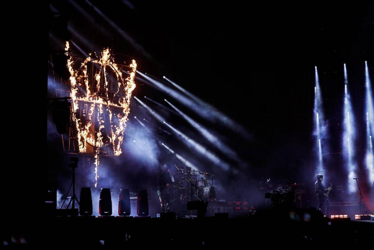 Matt Bellamy apenas se quitó la máscara en el segundo tema de la noche y las miradas estuvieron todo el tiempo sobre él. Y es que su peculiar timbre de voz, el encanto con el que maneja a sus fans y la cercanía con un público que no dejaba de adorarlo, hicieron de la noche, un momento mágico. El fuego de inmediato se hizo sentir y los visuales mostraban la narrativa de una gira que apuesta por el poder y la voluntad de la gente: “Will of The People”.