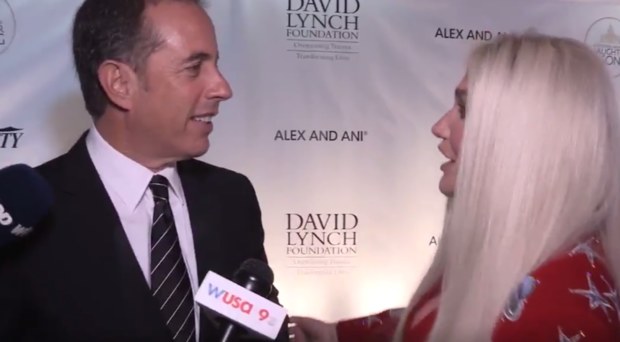Mientras Seinfled se encontraba contestando preguntas para un reportero de “Wusa 9”, cunado la cantante interrumpió la plática para declarar su admiración por él y pedirle un abrazo.
