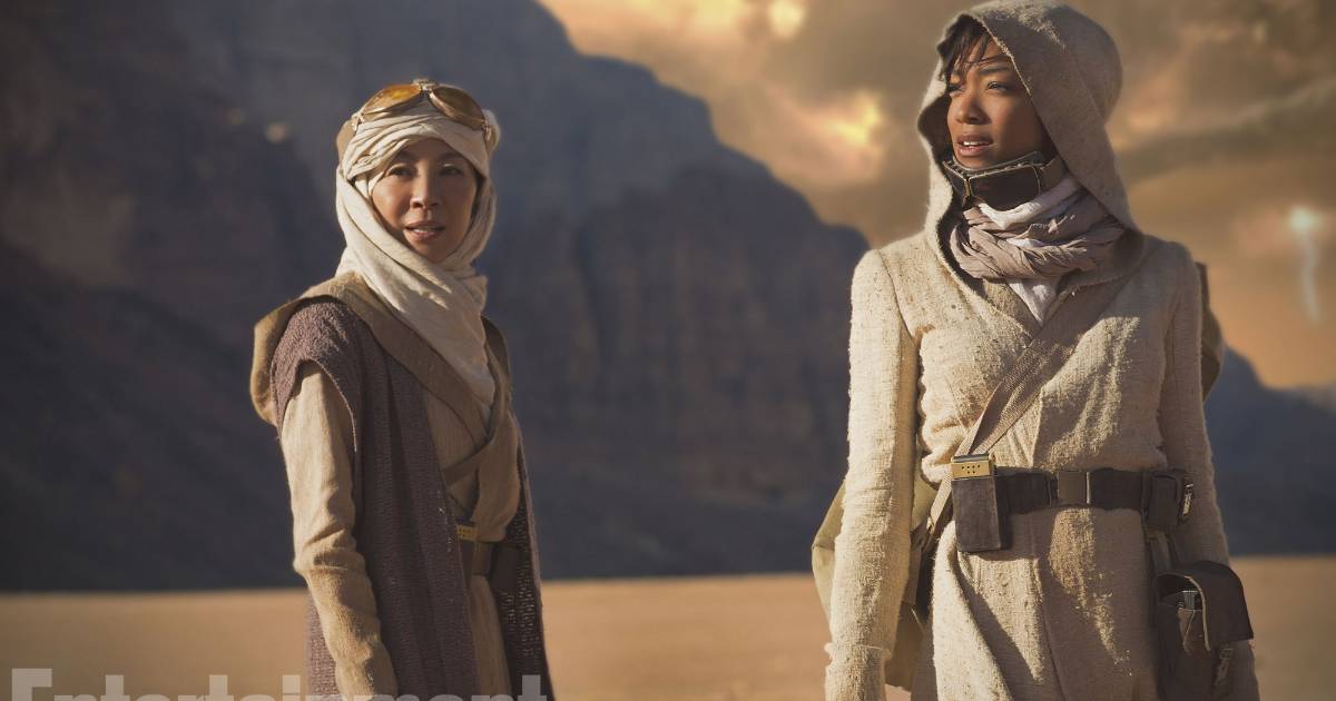 Se puede ver aquí a Michelle Yeoh como la Capitana Philippa Georgiou y Sonequa Martin-Green como la Primer Oficial Michael Burnham.