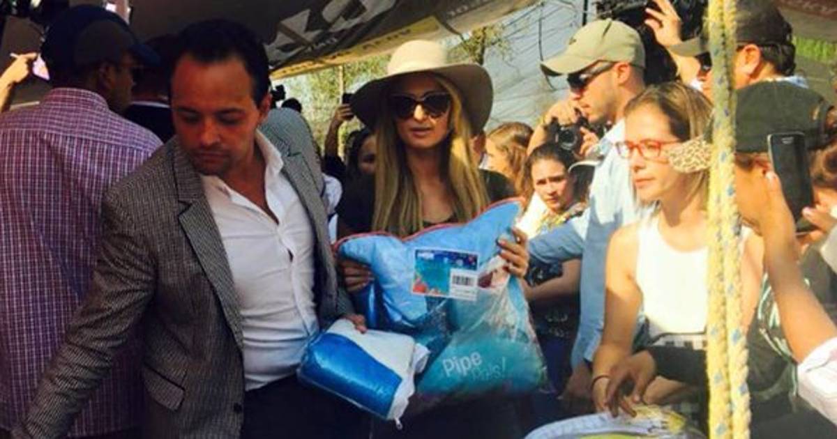 Hilton, quien se encuentra en la capital para presentar una nueva temporada de su línea de zapatos, se tomó el tiempo para ir al sur de la ciudad y repartir cobijas y ropa a los damnificados presentes.