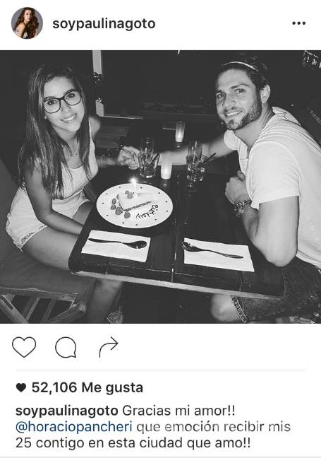 Minutos más tarde Paulina compartió una foto de ambos para agradecer así a su compañero de vida: "Gracias mi amor!!@horaciopancheri que emoción recibir mis 25 contigo en esta ciudad que amo!!"