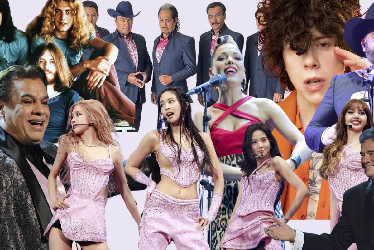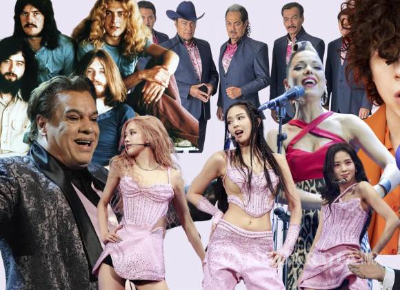 Algunos de los artistas mencionados son Intocable, LP, BLACKPINK, Led Zeppelin, Queen, Juan Gabriel, Ed Sheeran, Imelda May, Los Tigres del Norte y más.