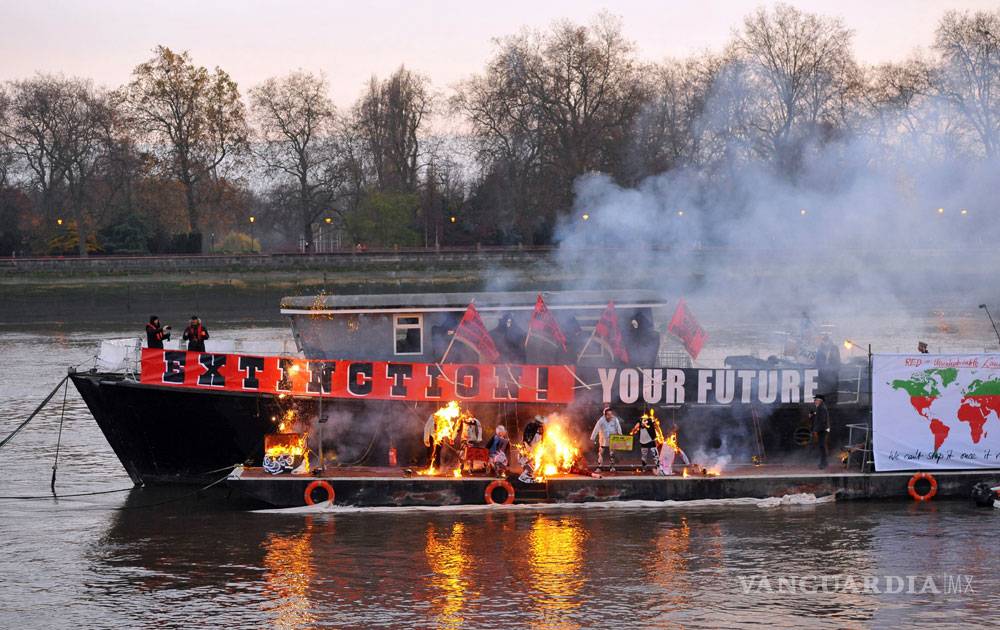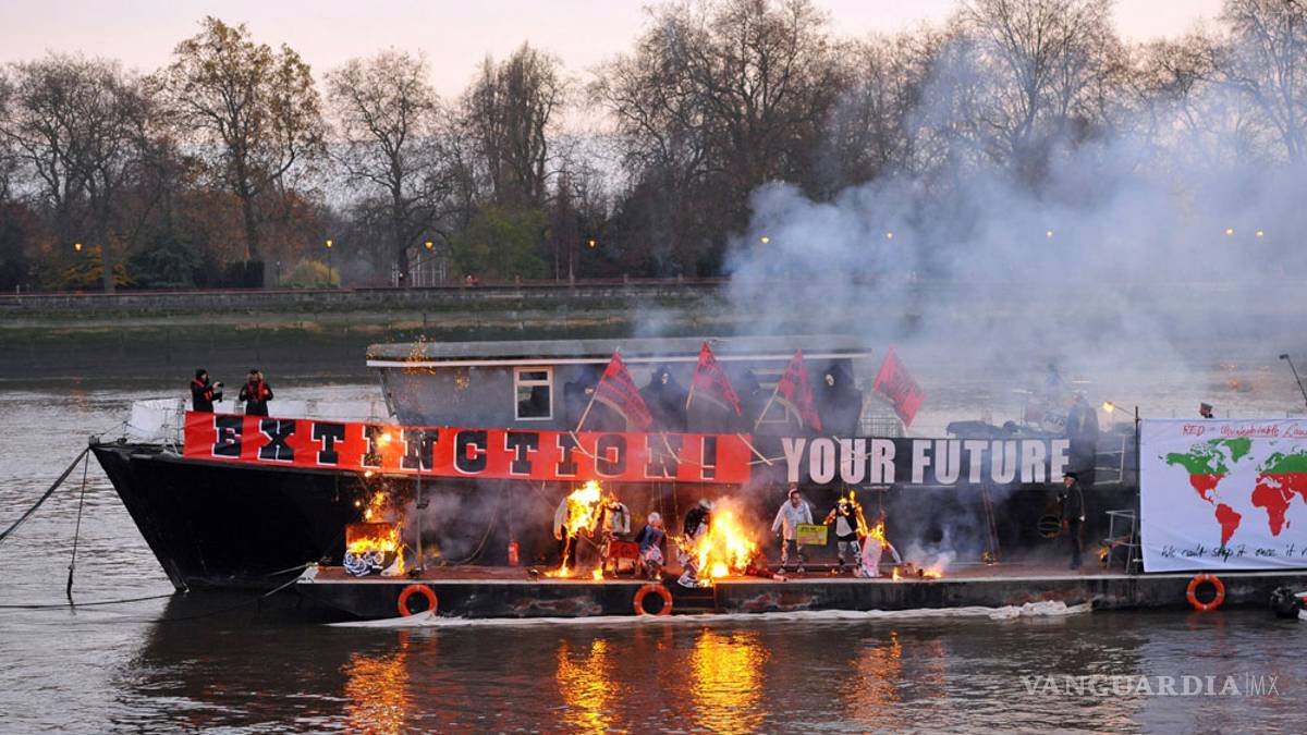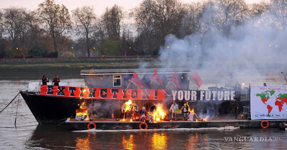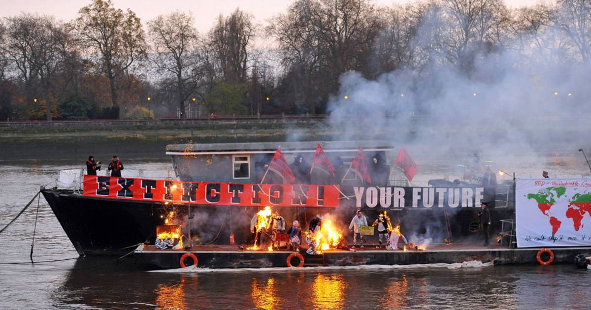 Corre dijo a las personas que veían su protesta en el río Támesis que "el punk nunca ha sido y tampoco buscó ser nostálgico".