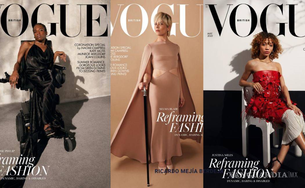 Entre las protagonistas para las portadas de mayo de la revista Vogue Británica estarán Selma Blair, actriz diagnosticada con esclerosis múltiple; Justina Miles, la intérprete de lenguaje de señas que se hizo famosa en el Super Bowl de Rihanna y los modelos Aaron Rose Philip y Ellie Goldstein.
