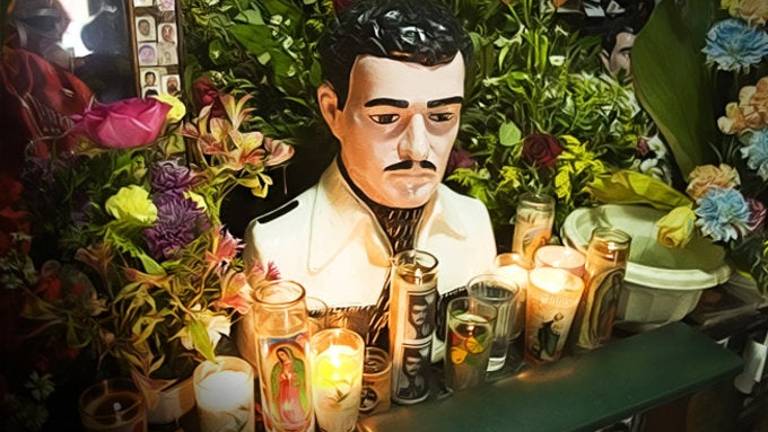 La devoción popular empezó cuando un capo narco de la región de nombre Julio Escalante ordenó matar a su hijo Raymundo por haber hecho negocios sin su consentimiento.