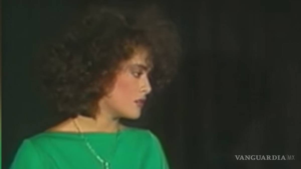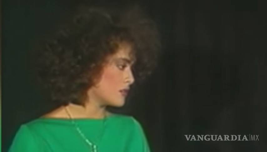 En el video se puede ver a una joven actriz con blusa verde y el look característico de los años 80: cabello esponjado y maquillaje recargado.