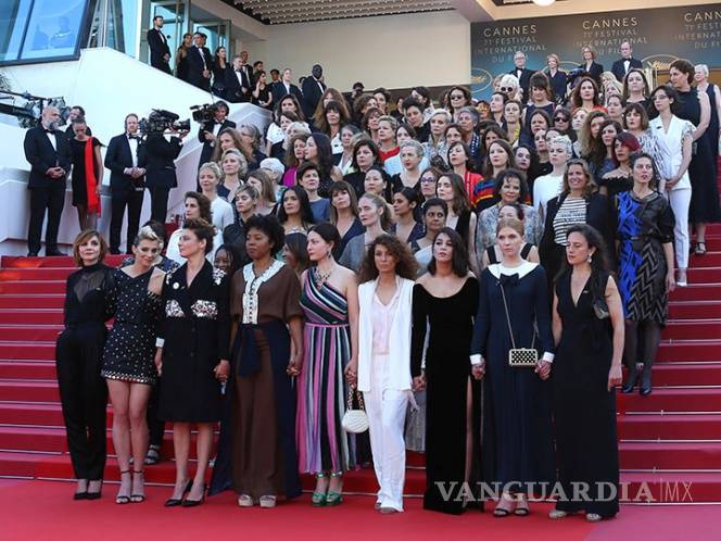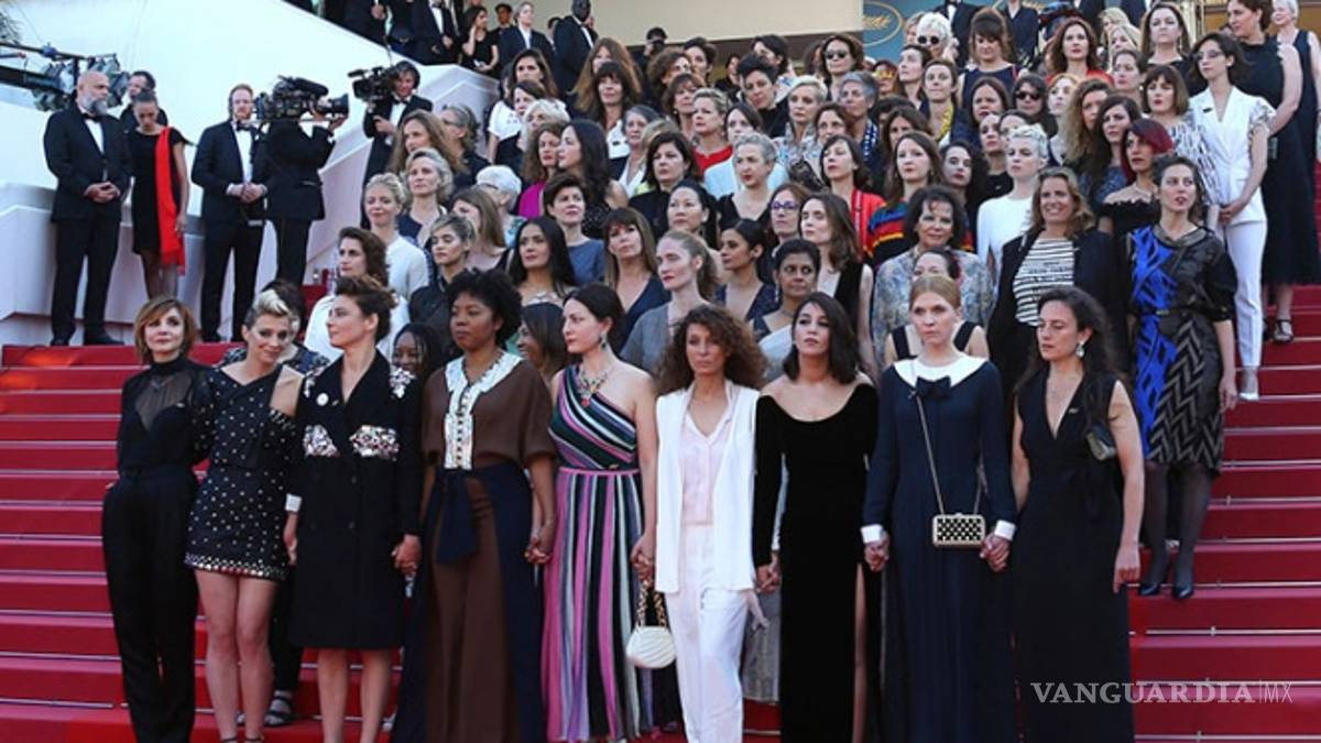 82 mujeres se plantaron en los escalones del Palacio de Festivales y Congresos de Cannes en una protesta sin precedentes para presionar por una igualdad de género en la industria cinematográfica