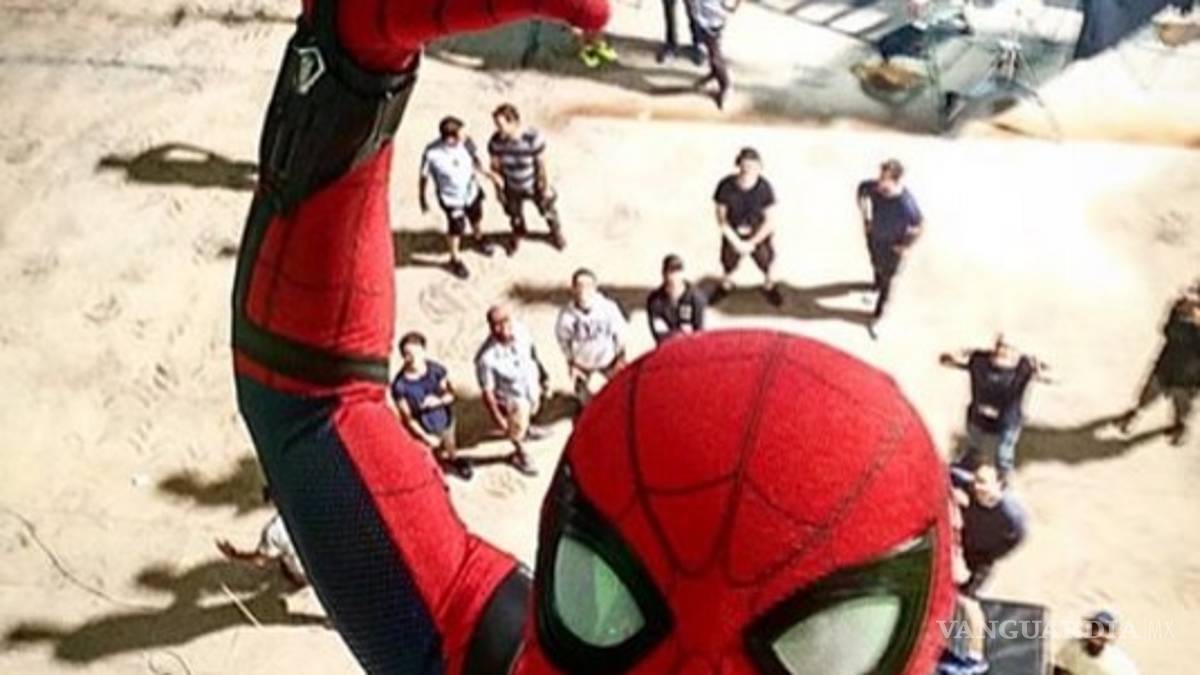 Colgado en alguna pared del set de filmación, Peter Parker saludó a sus fanáticos. Se trata del joven con poderes arácnidos que ahora será interpretado por el actor Tom Holland, quien con su traje rojo y mostrando los aditamentos con los que dispara telaraña, se tomó un selfie.