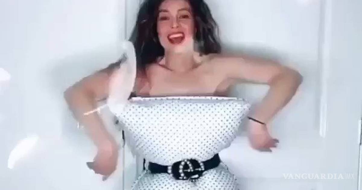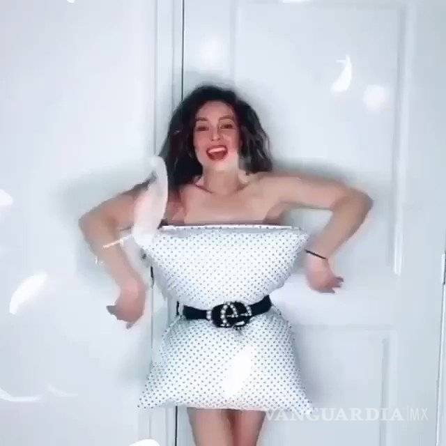 La protagonista de María la del Barrio, aparece en el video vistiendo solo una almohada blanca con lunares negros, sujeta por un cinturón negro, tal como lo dicta el "Pillow Challenge" con efecto viral al que se sumó.