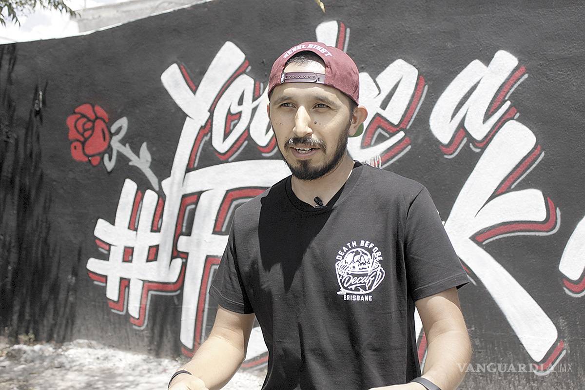 Jorge González ‘Treka’, de 32 años, es originario de la ciudad de Saltillo y creció en su barrio en la colonia Oceanía, donde rodeado del típico ambiente de barrio, pasó mucho tiempo viendo como las bandas grafiteaban los nombres de sus clicas junto a sus propias impresiones de la Virgen María.