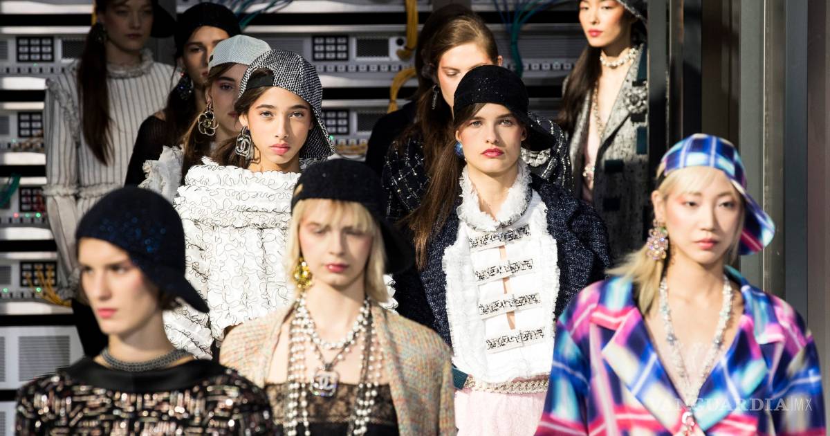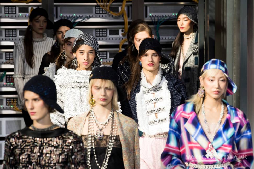 Chanel puso como marco una gigantesca base de datos cuidando cada detalle: todas las máquinas estaban perfectamente conectadas con cables, las pantallas se iluminaban en un escenario futurista y pulcro para una línea primaveral que apostó por prendas de lencería con un toque urbano, casi rapero.