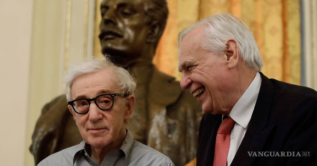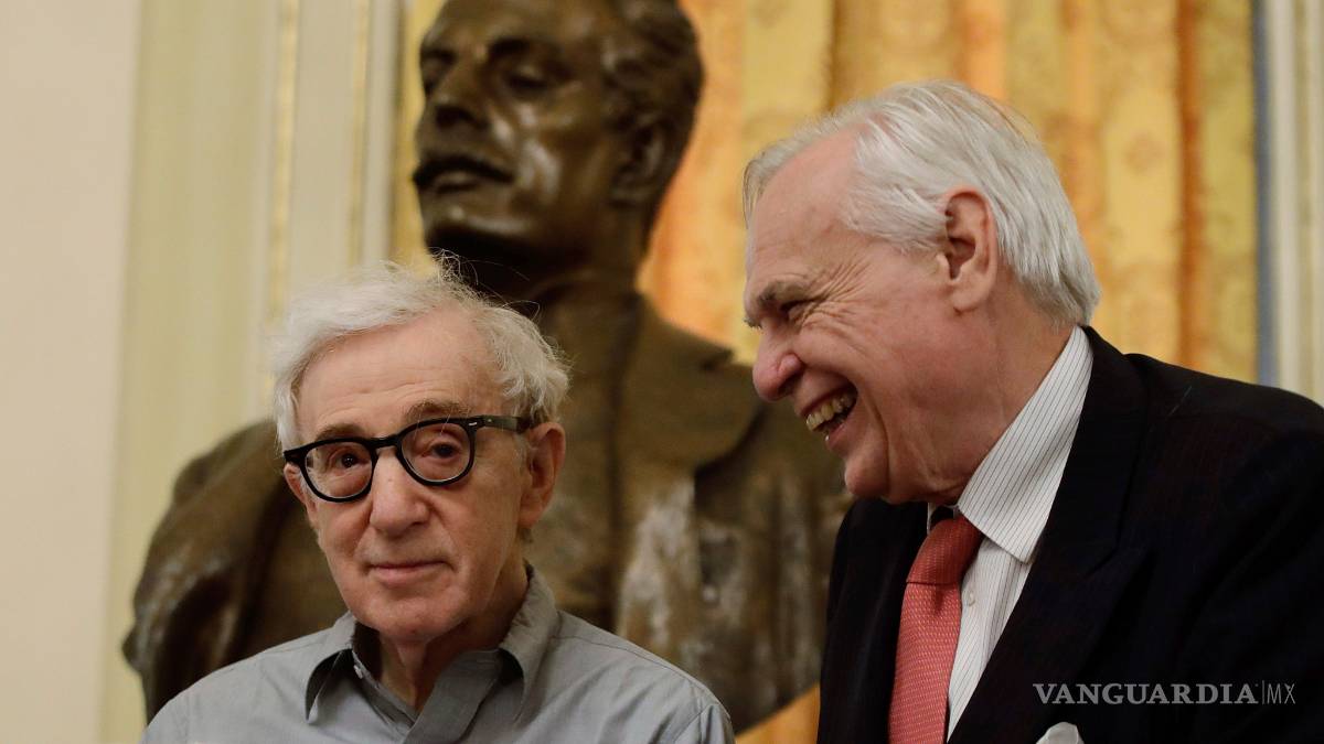 Allen fue recibido con aplausos al llegar a una conferencia de prensa en antesala al estreno del sábado.