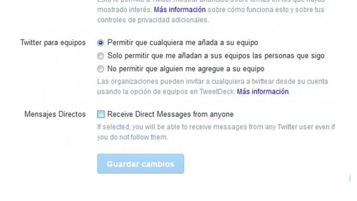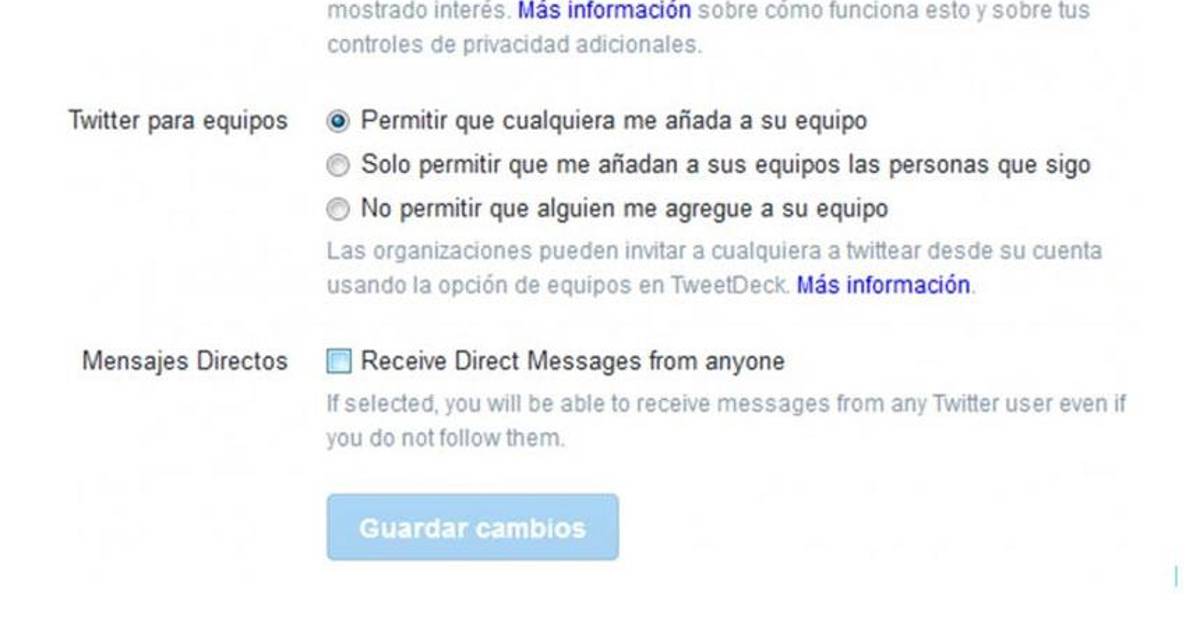 Para activar la función hay que tildar la opción "Recibir mensajes directos de cualquiera de tus seguidores", para desactivarla hay que deseleccionarla. Según la compañía, la herramienta ya está disponible para todos los usuarios del planeta, pero además anunció que en las próximas semanas habrá otras novedades.