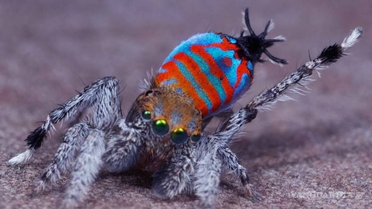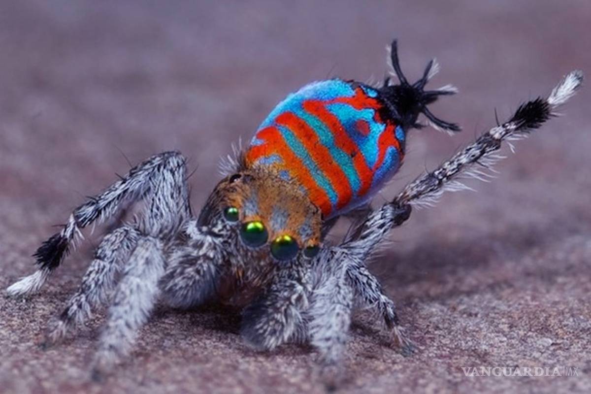 La mayoría de la gente no  piensa en las arañas como algo hermoso o lindo, pero no hay otra forma de describir esta especie conocida como Pavo Real, ya que sus colores son asombrosos y los patrones en su cuerpo son únicos.