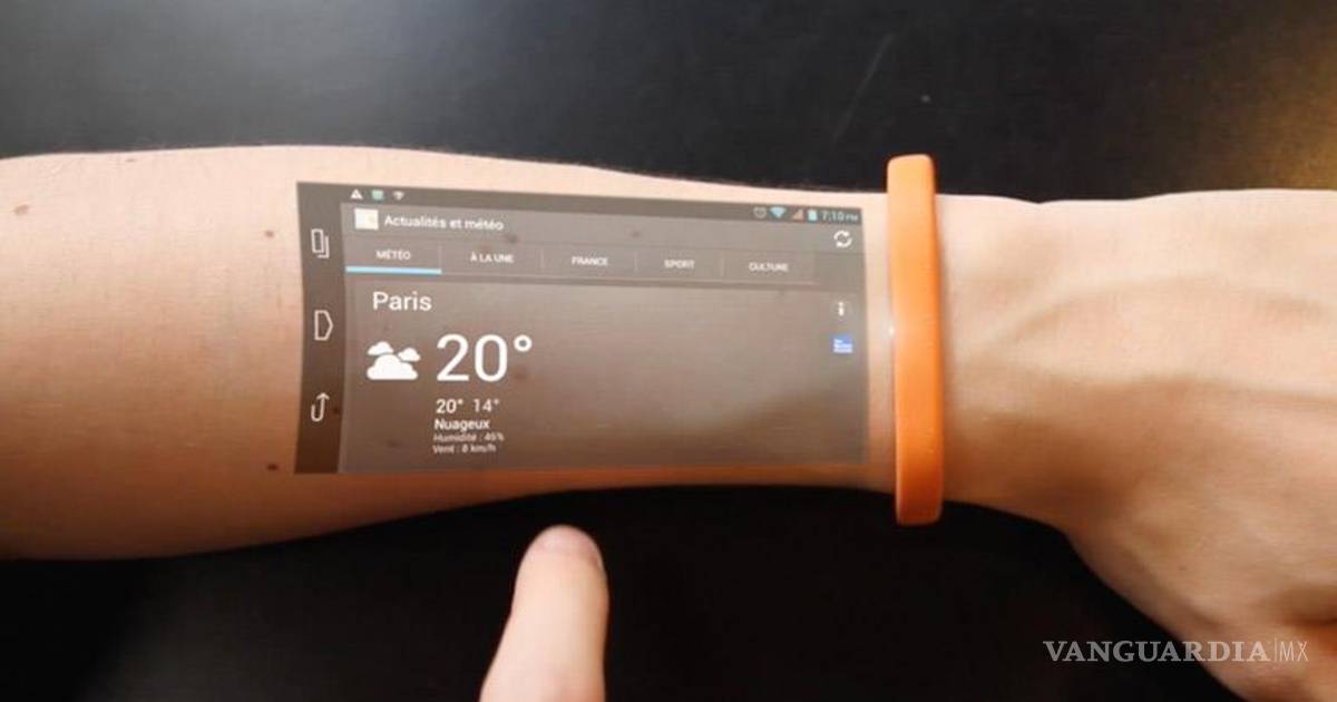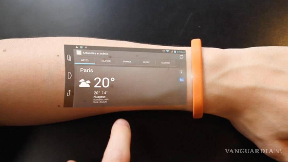 México.- Ahora podrás ver en tu piel todo lo que ocurre en tu celular. Una compañía francesa creó un brazalete que permite proyectar la pantalla de tu celular o tableta en tu brazo.