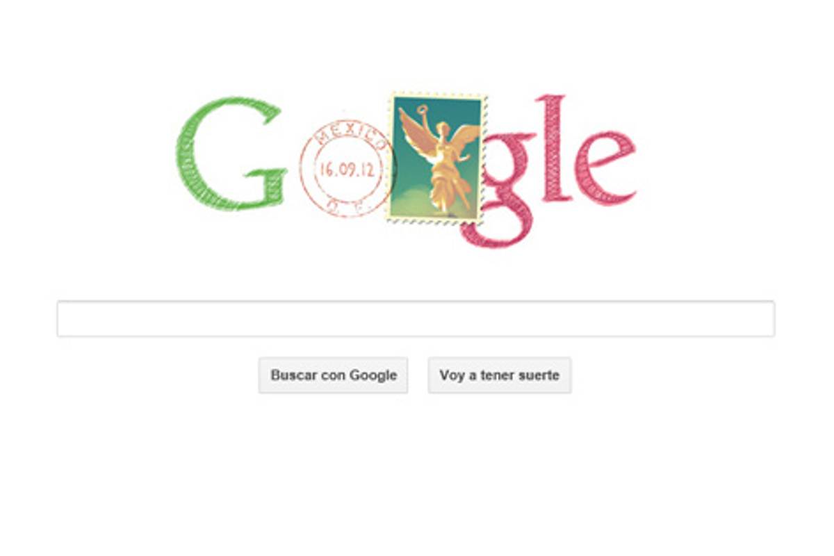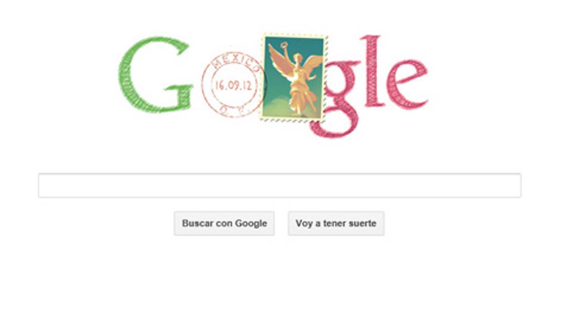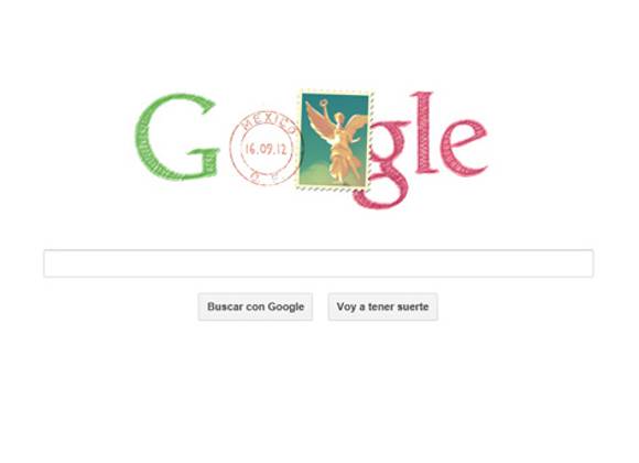 En su `doodle', el buscador invita a conocer más sobre la gesta heroica con un timbre postal del Angel de la Independencia y a su lado, un sello con la fecha de hoy: 16 de septiembre de 2012.
