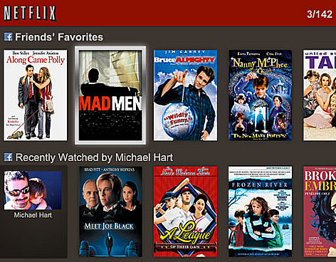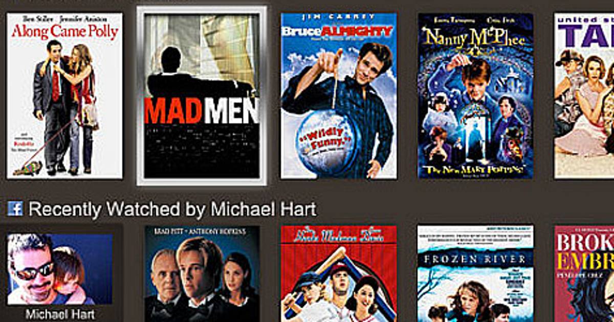 Los usuarios de Netflix, un servicio de paga para ver programas televisivos y películas en línea, pueden descubrir programas y películas a través de "Facebook connect", aplicación que permite compartir lo que ven directamente en su muro.