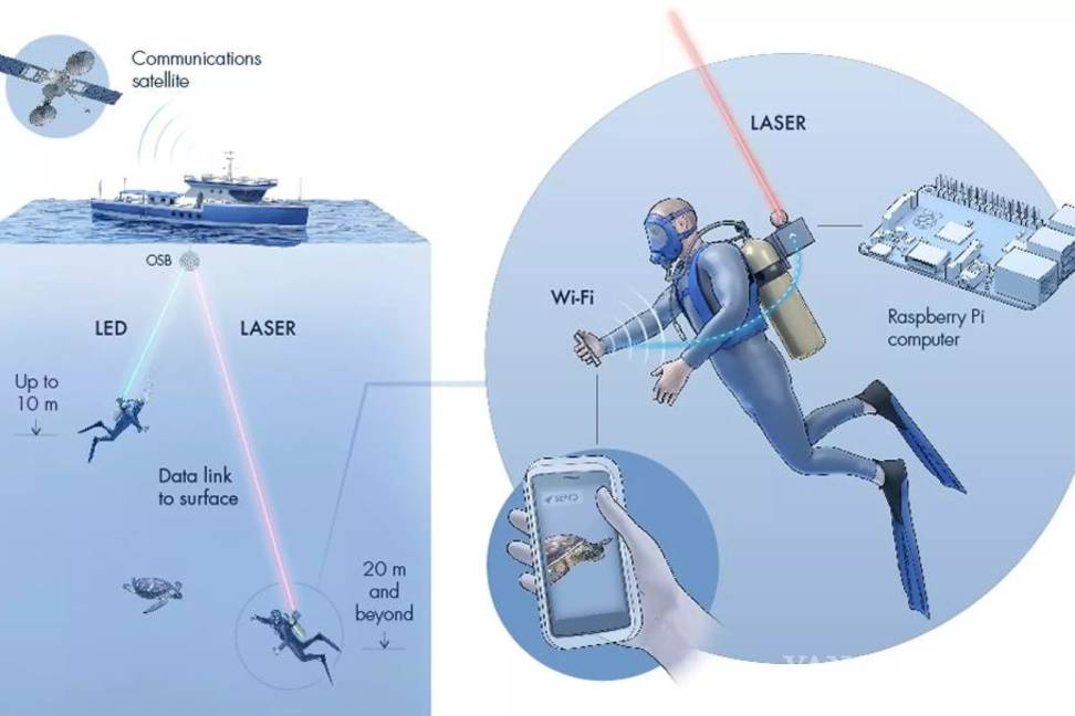 A través de un sistema que envía datos a través de luz, los buzos podrían transmitir instantáneamente imágenes de debajo del mar a la superficie lo que ayudará a la academia y la iniciativa privada a monitorear y explorar los entornos submarinos en detalle.