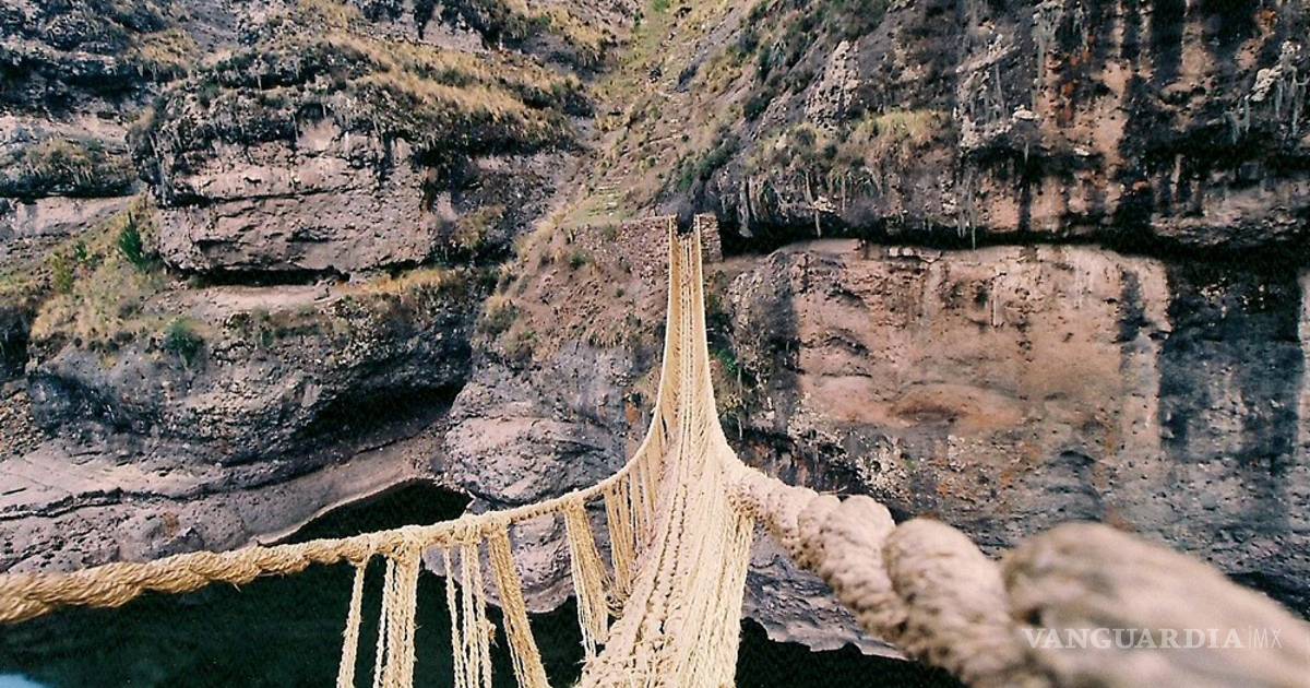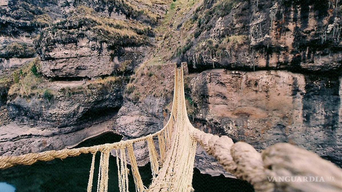 Conocido como Q'eswachaka o Keshwa Chaca, este es el único ejemplo que sobrevive de los puentes tejidos a mano de los incas, que en el pasado eran comunes en el sistema de caminos de esta cultura precolombina. Está hecho de esparto, mide 36 metros y cuelga a una altura de 67 sobre el cañón Apurimac, en Perú.