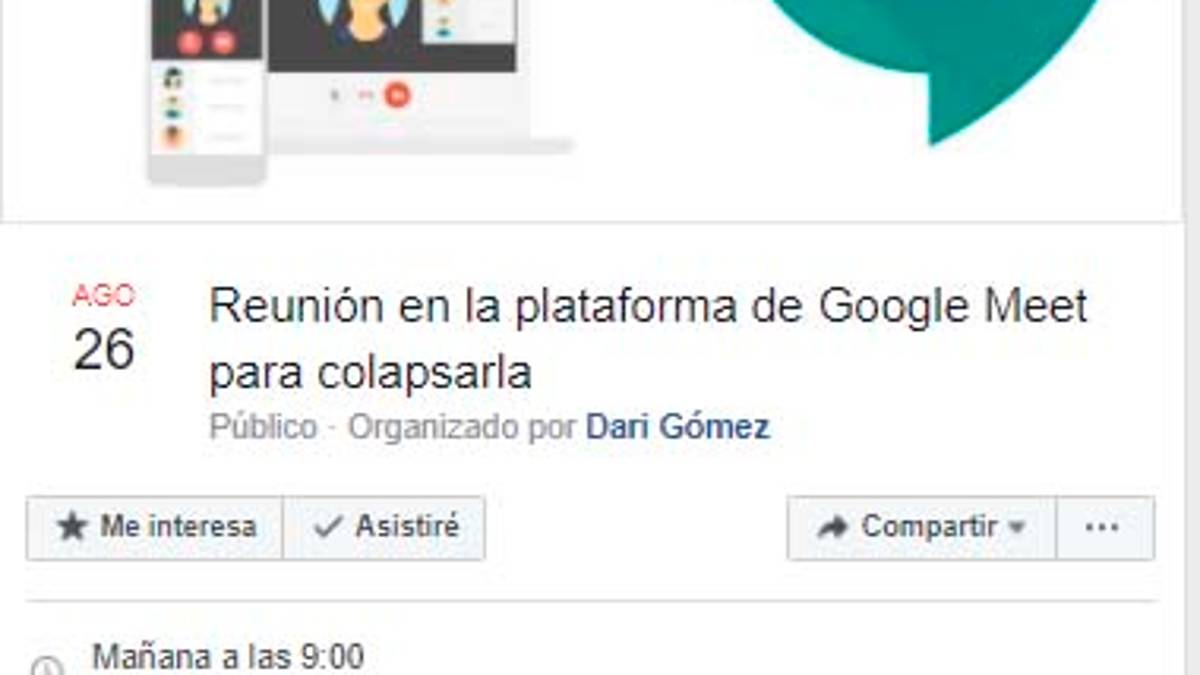 Un evento creado en Facebook invita a los usuarios de esta red social a una reunión en Google Meet con la intención de colapsarla.