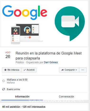 Desde Facebook, convocan a reunión para colapsar Google Meet... y ya confirmaron 46 mil