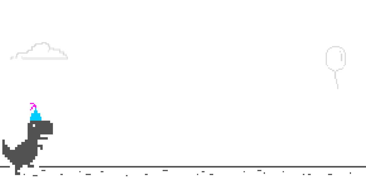 Para celebrar el cuarto aniversario de Dino Chrome, los desarrolladores han creado una edición especial que está llena de pasteles y sombreritos de fiesta.
