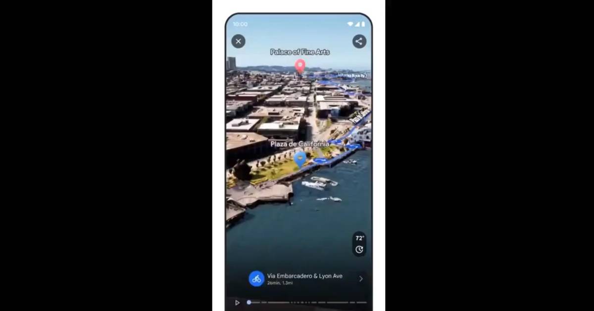 Google empezó a incorporar inteligencia artificial en su aplicación Maps para transformar la experiencia de los usuarios y ofrecerles información más útil, por ejemplo a través de una nueva función que permitirá observar una ruta en 3D.
