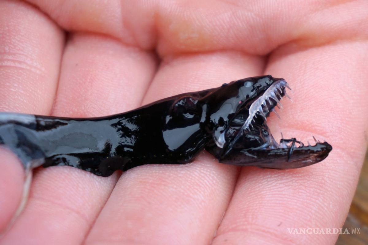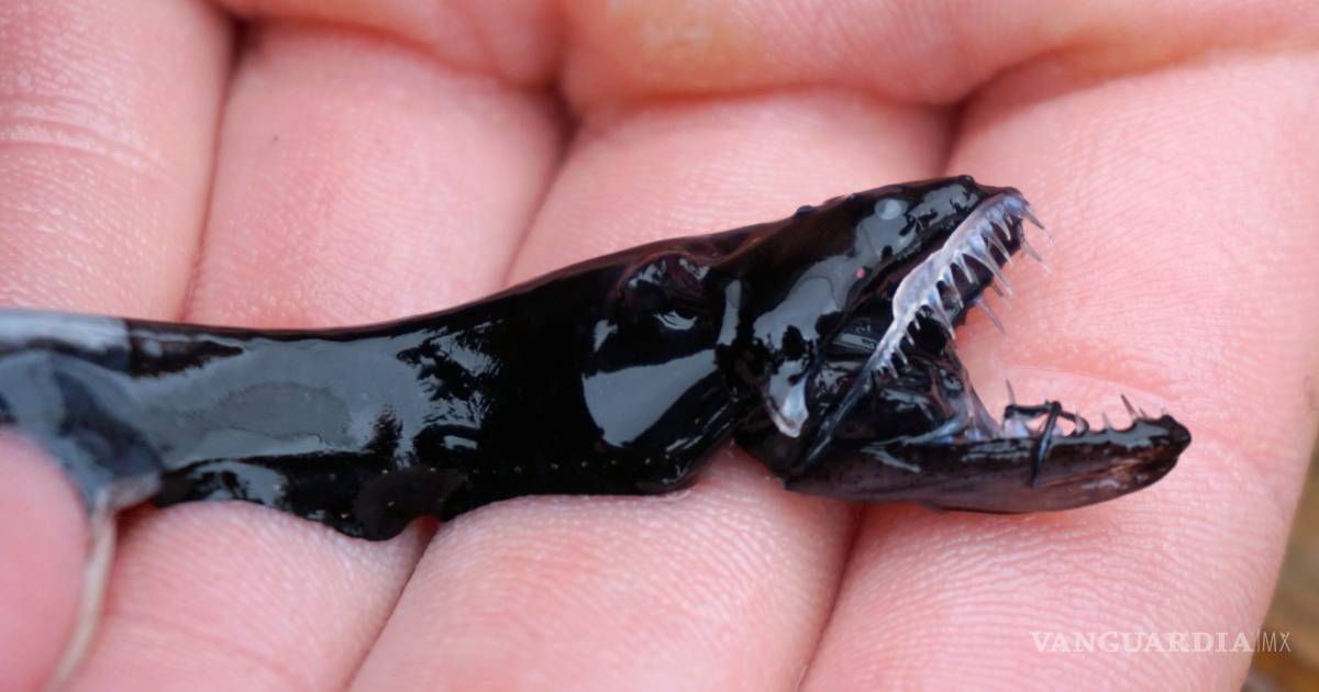 El pez es un pequeño predador con dientes afilados y puntiagudos parecidos a agujas que sobresalen de una mandíbula que puede extenderse para morder a una presa de hasta la mitad del tamaño de su cuerpo.