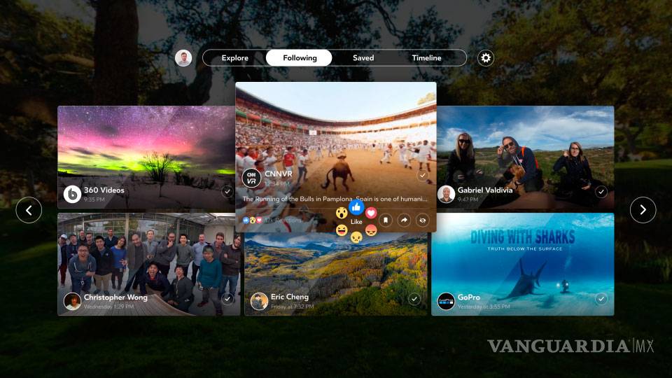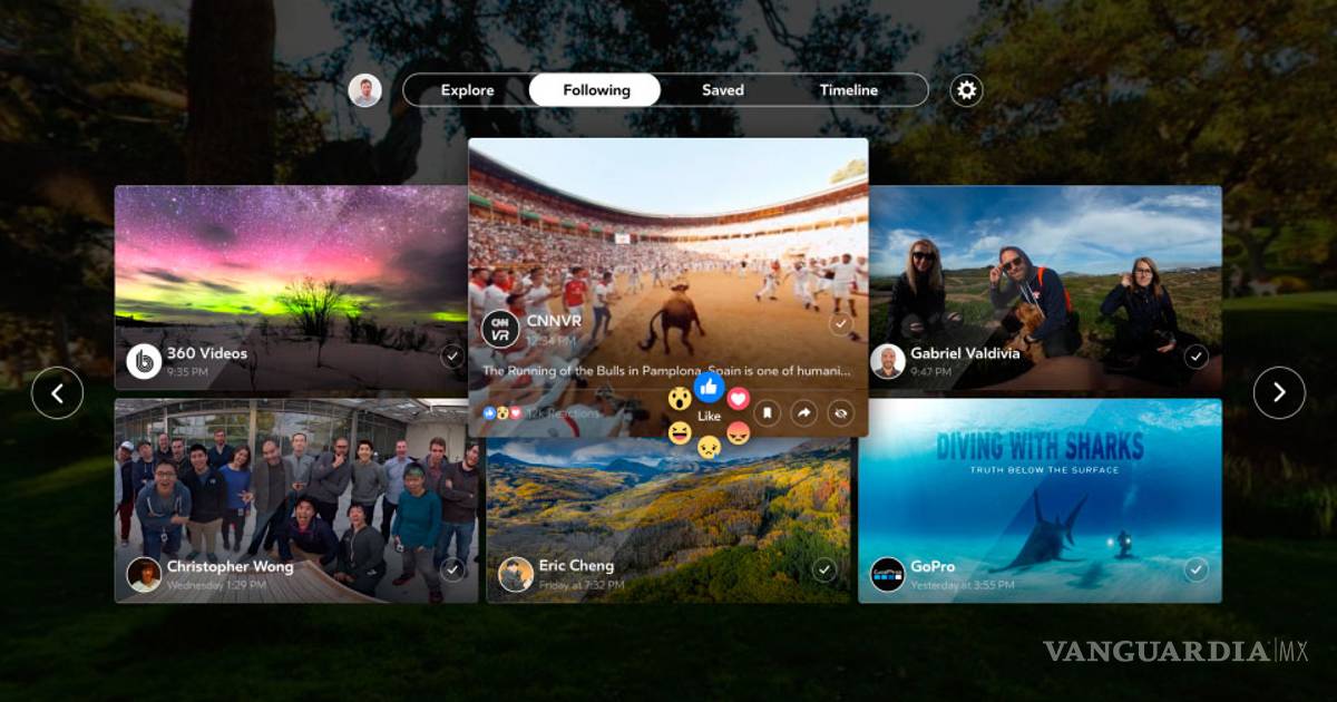 Aunque aún no hemos probado el app en unas gafas, Facebook lo promueve como un destino único para el contenido en 360 grados de tus amigos, marcas favoritas, páginas que sigues y todo el contenido que tu mismo has guardado en la red.