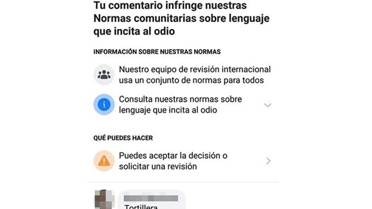 El algoritmo de Facebook lo toma como si de una ofensa se tratara, ocultando el comentario y en el peor de los casos, bloqueando la cuenta.
