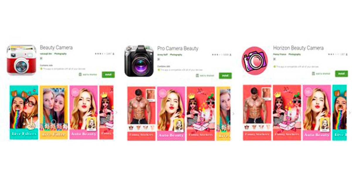 Otro grupo de aplicaciones, instaban a los usuarios a cargar sus fotografías para poder aplicarles los filtros de belleza, y en lugar de la imagen editada, mostraban un anuncio de una actualización a una versión mejor.