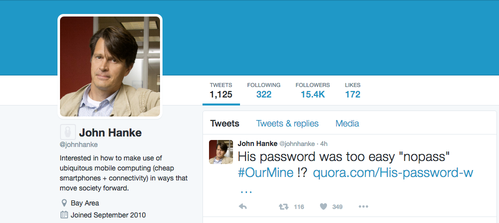 Hackers del grupo ‘OurMine’ entraron a la cuenta de Twitter de John Hanke la tarde del sábado 30 de julio, debido a los retrasos del juego en América Latina, “este hack es por Brasil” tuitearon los invasores desde la cuenta del creador de Pokémon Go.