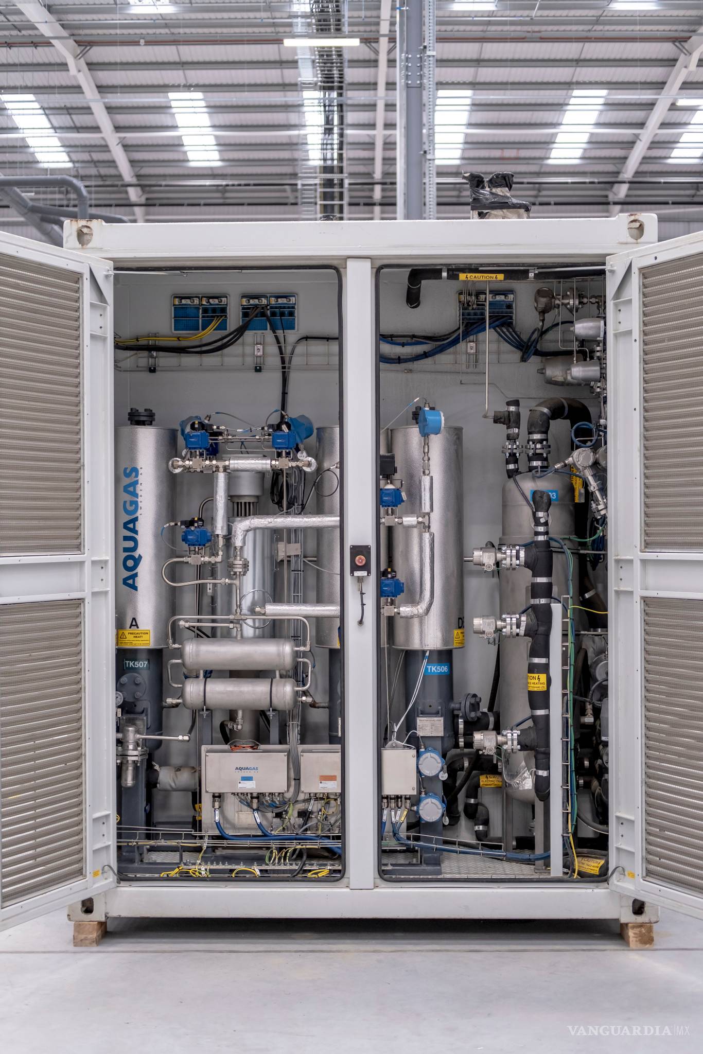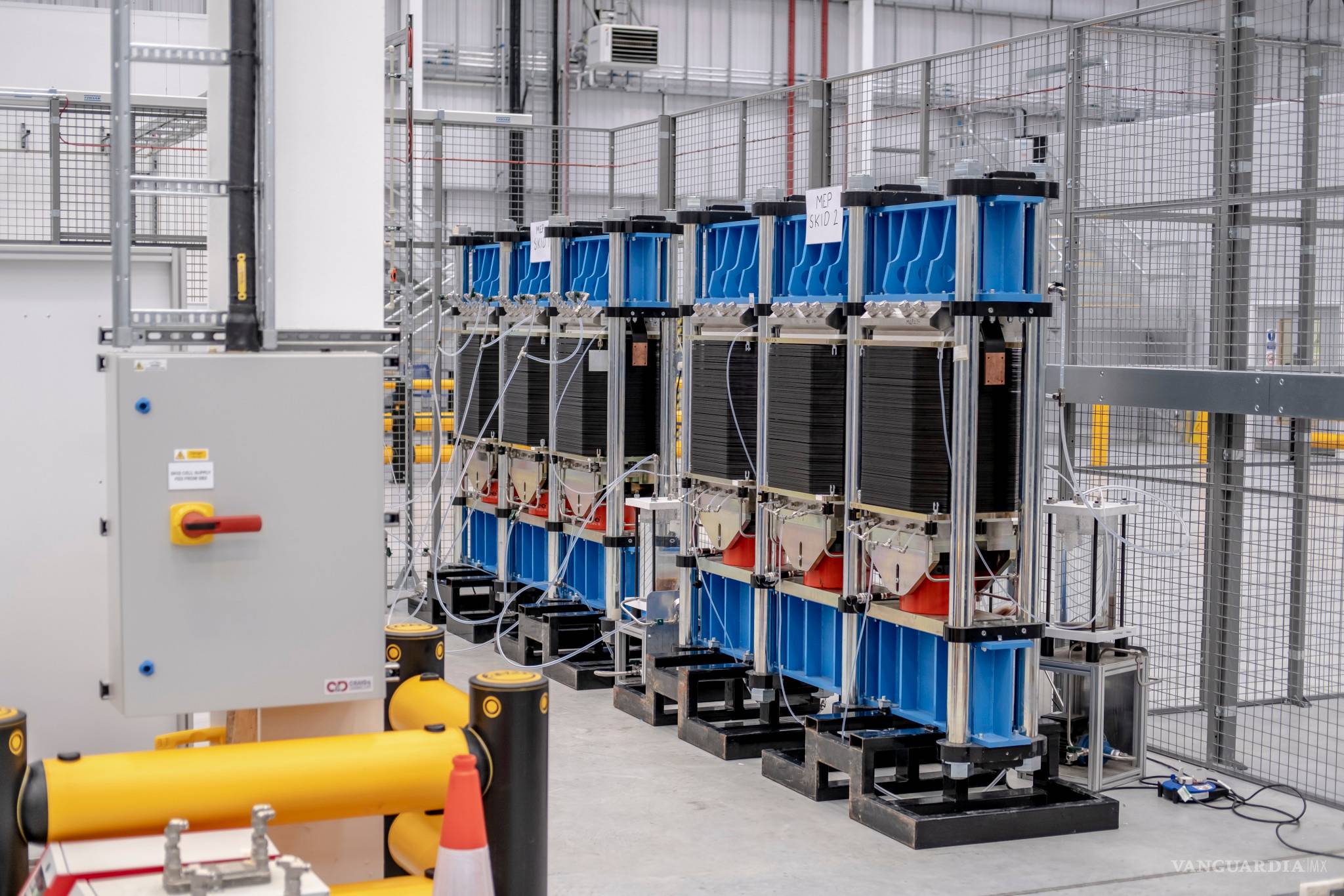Las entrañas de estas plantas de gas son unidades con celdas estrechamente apiladas, como bandejas de cafetería, donde se produce la separación del hidrógeno del agua. Se pueden unir muchos módulos para hacer instalaciones muy grandes que, a su vez, podrán producir abundante hidrógeno limpio.