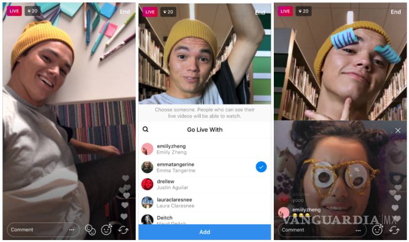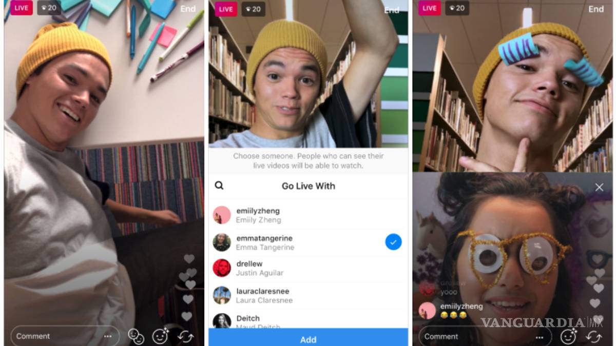 A partir de esta semana Instagram permitirá a sus usuarios hacer transmisiones simultáneas entre dos cuentas, habilitando que los usuarios que inicien una transmisión en vivo puedan seleccionar a uno de sus espectadores para compartir pantalla.
