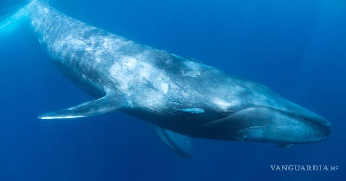 Las ballenas azules miden unos 25 y 30 metros de largo, pueden pesar hasta 200 toneladas y se cree que hay entre 10,000 y 25,000 ejemplares en todo el planeta.