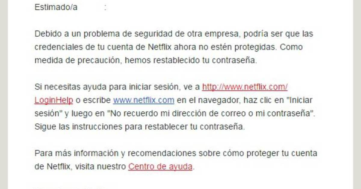 Netflix, que en abril superó los 80 millones de abonados, no ha confirmado el número de usuarios que se podrían ver afectados, ni tampoco a cuántos se han dirigido ya para pedirles el cambio de contraseña. En algunos casos, los usuarios han recibido correos electrónicos en los que la empresa les avisa de que ya se ha restablecido automáticamente su contraseña porque no estaba protegida.