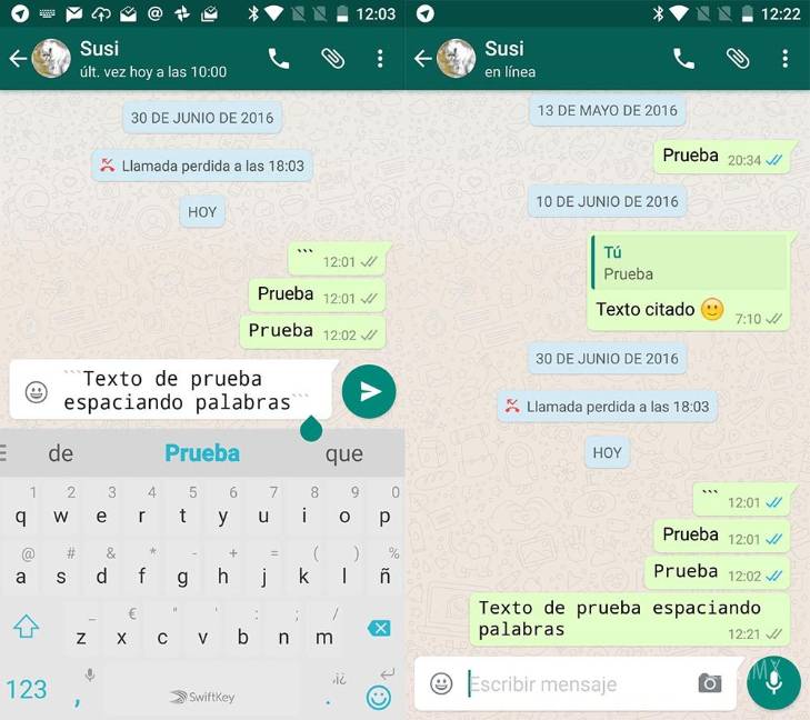 Whatsapp ya había presentado formas de usar negrita, cursiva y tachado en los mensajes añadiendo caracteres al principio y al final de los mensajes.