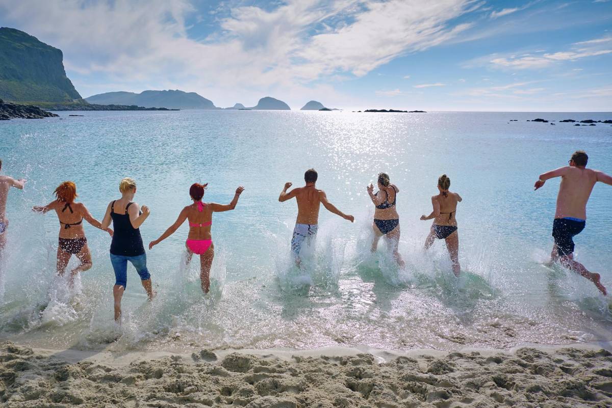 Mujeres posan en la playa con tops de bikini y tangas, G-string o brasileñas, sonriendo y levantando sus brazos. Hoy, las tangas, G-string y otros estilos que ‘dejan poco a la imaginación’ son aceptados por mujeres de todas las formas y tallas