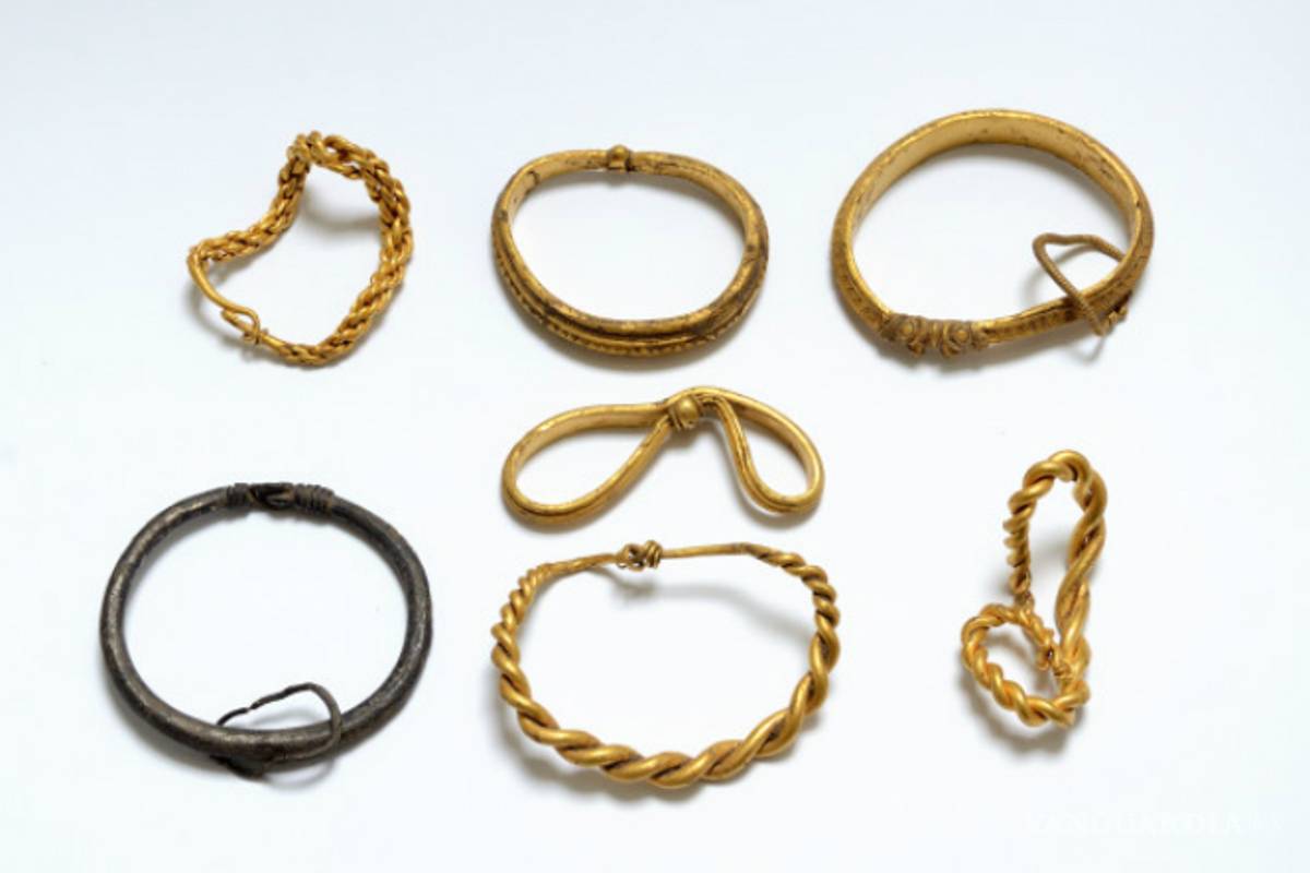COPENHAGUE, Dinamarca.-Unos arqueólogos aficionados han encontrado siete brazaletes, uno de plata y seis de oro, según anunció el jueves el principal museo de Dinamarca, que lo describió como el mayor hallazgo de piezas de oro de la era vikinga en el país.